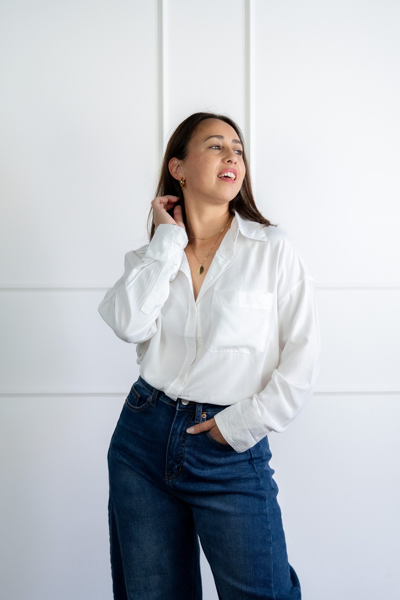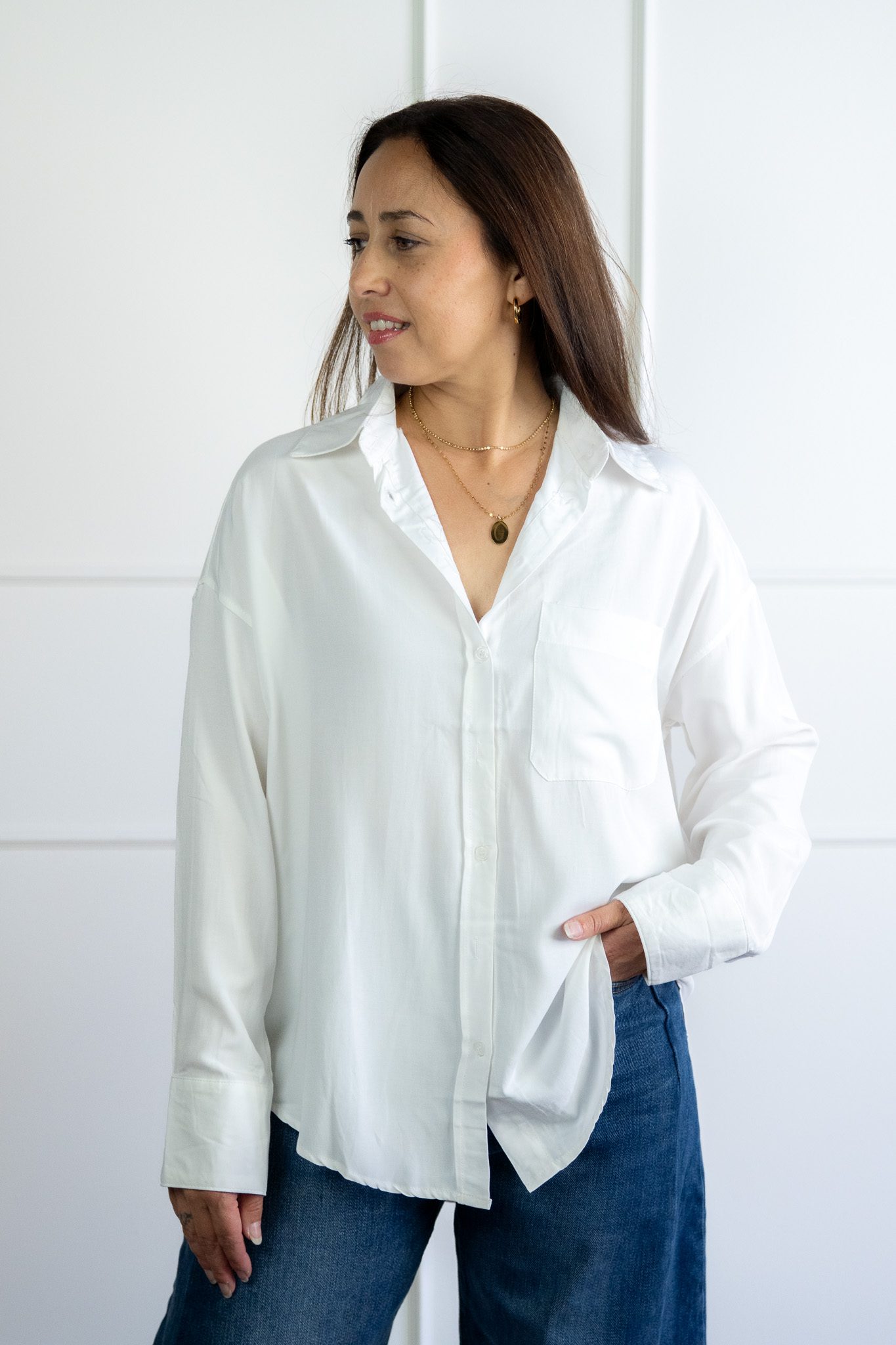 Annie Blouse Wit van she clothes is een witte blouse. De blouse is de perfecte basic voor in je kast. De blouse is aan de achterkant langer. De blouse heeft op de voorzijde een vakje op de borst.