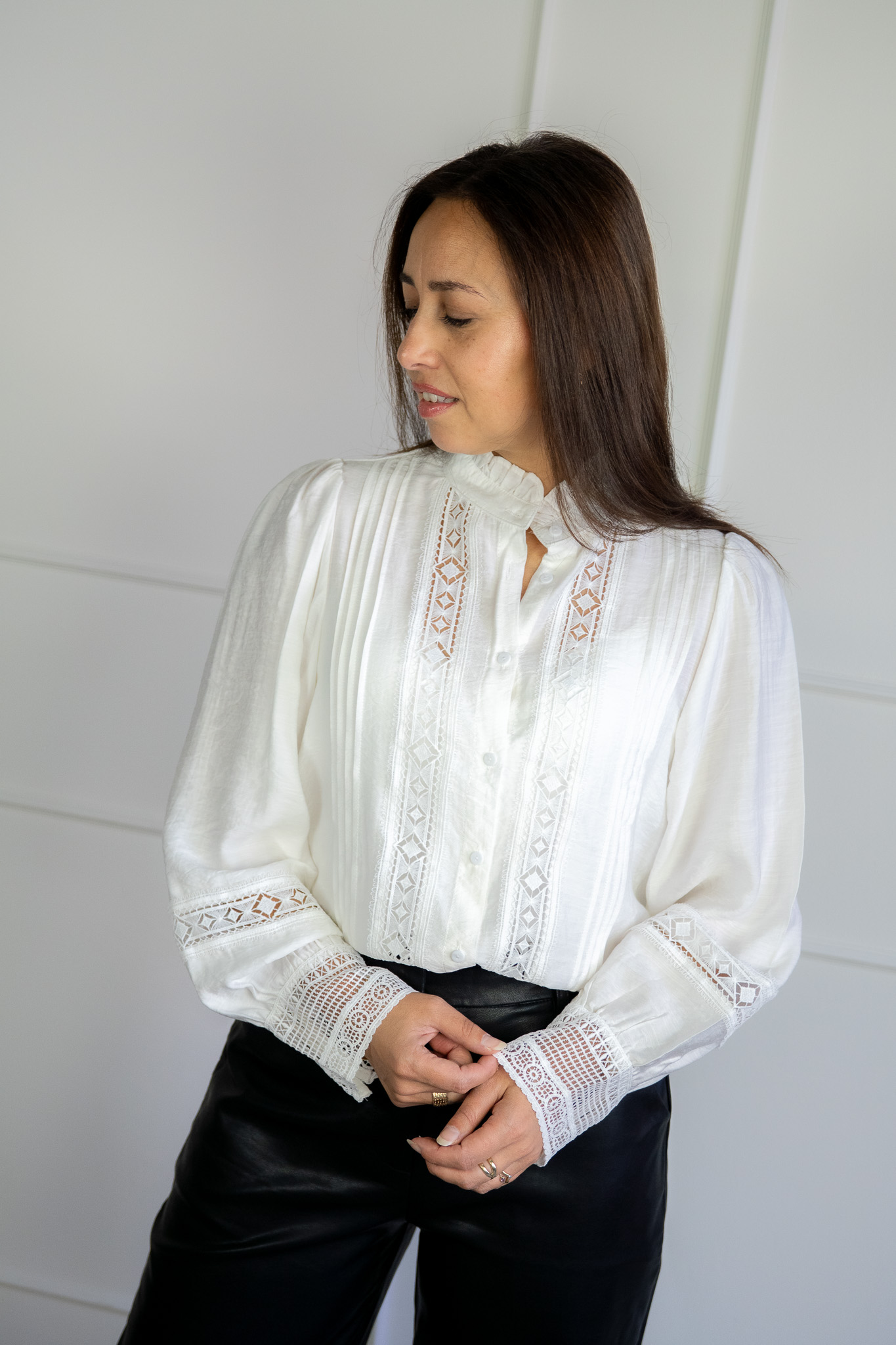 Bisou Blouse Wit van she clothes is een witte blouse met leuke details. De blouse is een leuke unieke blouse voor in je kast.