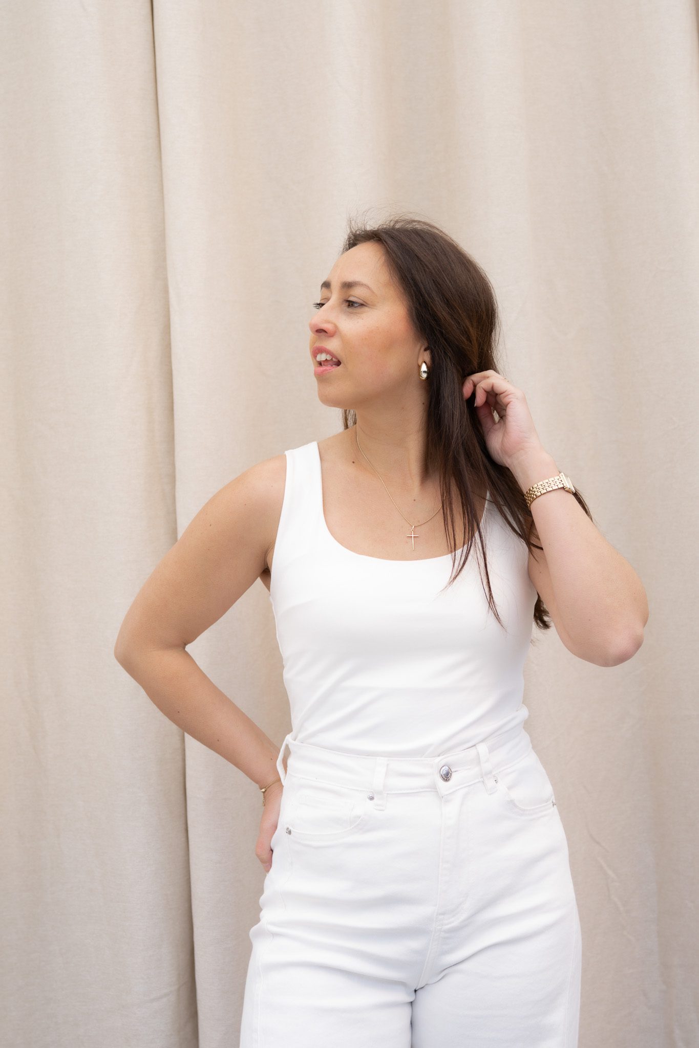 De SC Ginny top van She Clothes in wit is een frisse en tijdloze essential voor elke garderobe. Een veelzijdige basic die je eindeloos combineert en die je het hele jaar door zult dragen.