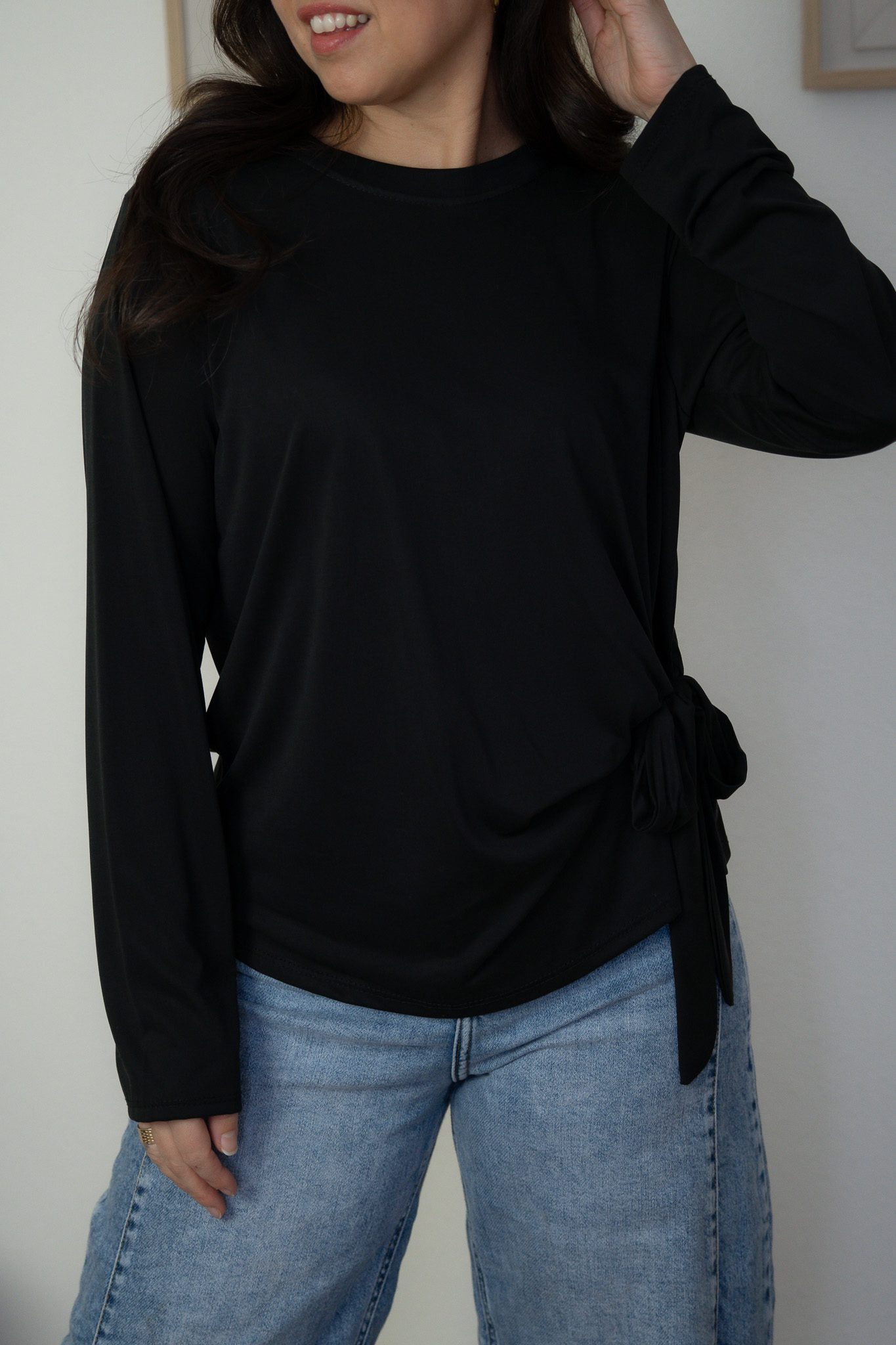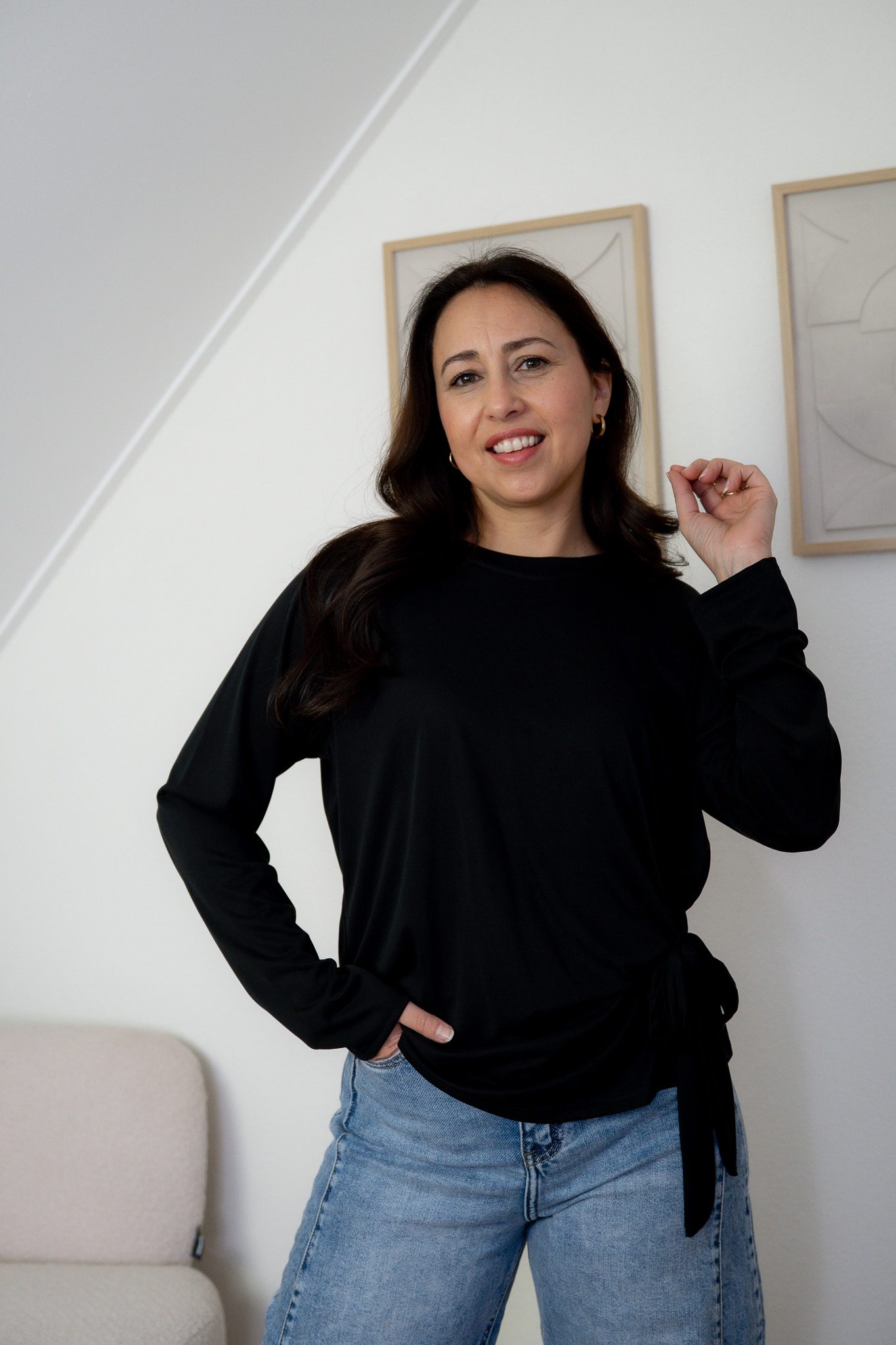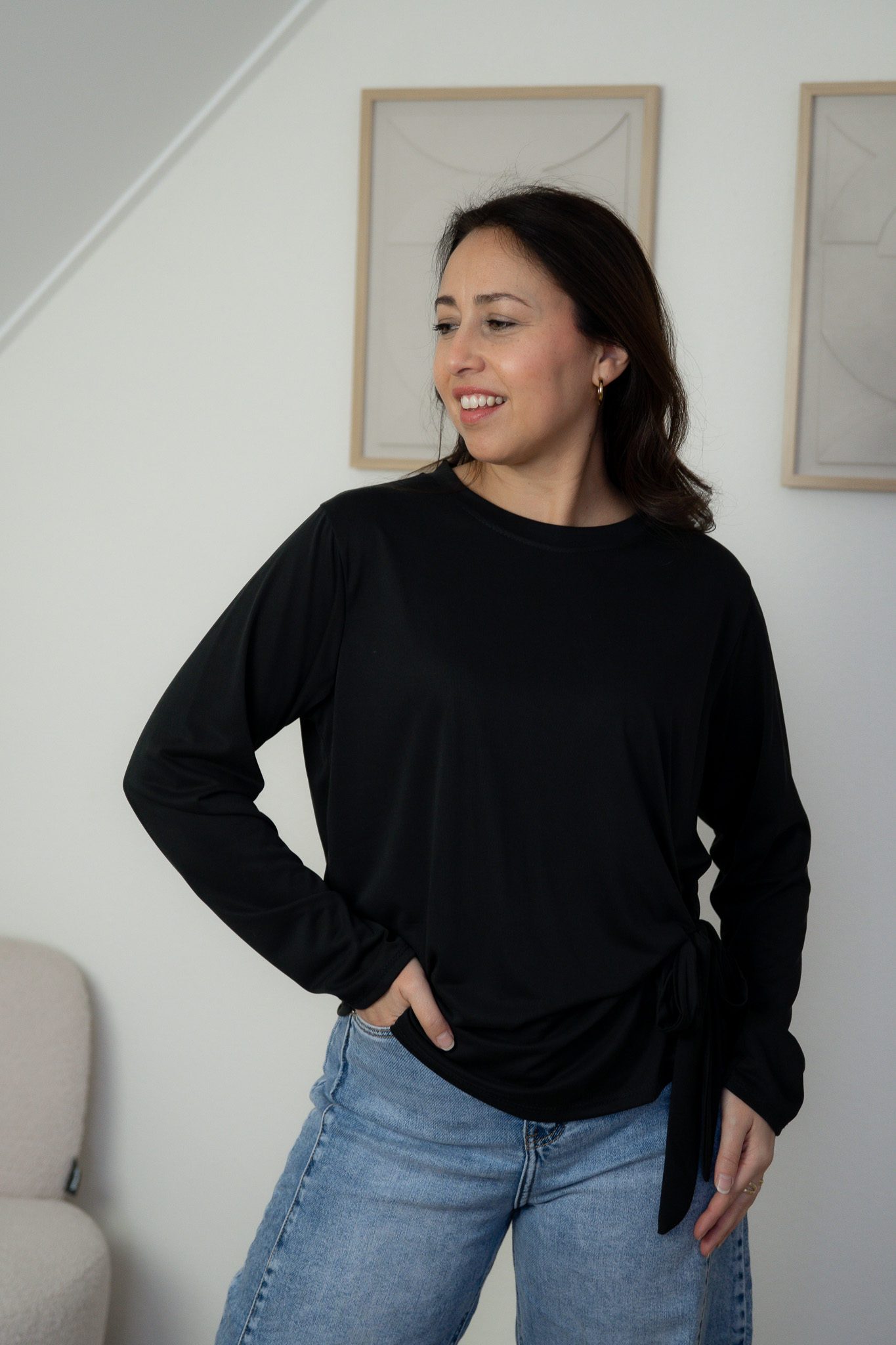 De Haily Top in zwart is een losvallende top met lange mouwen. De stof voelt zacht aan en draagt comfortabel, waardoor dit een fijn item is voor elke dag en elke gelegheid. De top heeft een strik waardoor het een speelse uitstraling heeft. De Haily top is er in de kleur wit, zwart en taupe.
