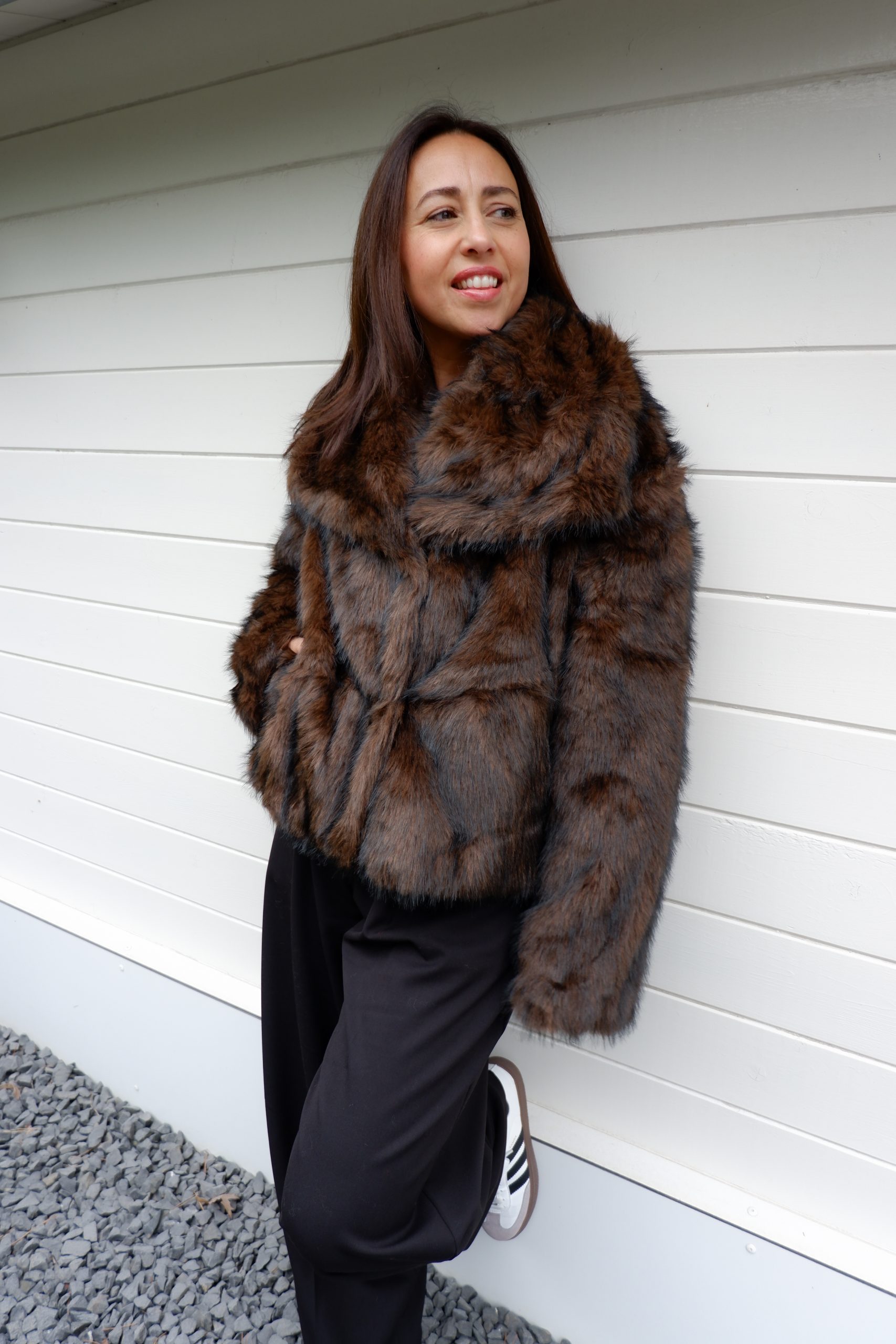 Een echte blikvanger: dit bruine Fur Jacket heeft een chique, luxueuze uitstraling en voelt heerlijk zacht aan. Het kortere model zorgt voor een moderne, vrouwelijke look en maakt hem perfect te combineren met een pantalon, jeans of jurk.