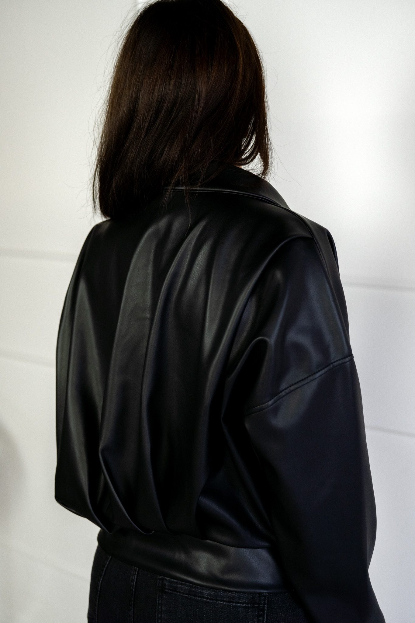 Jada Bomber van Vegan Leder Zwart van SheClothes is een korte Bomber jas in de bruin. Het jasje heeft lange mouwen en een elastiek aan de onderkant waardoor het een leuk gepoft effect geeft. Dit jasje van Vegan Leder  en is gevoerd en heeft ook 2 zakken aan beide kanten met als leuk detail een gouden rits een ritssluiting.