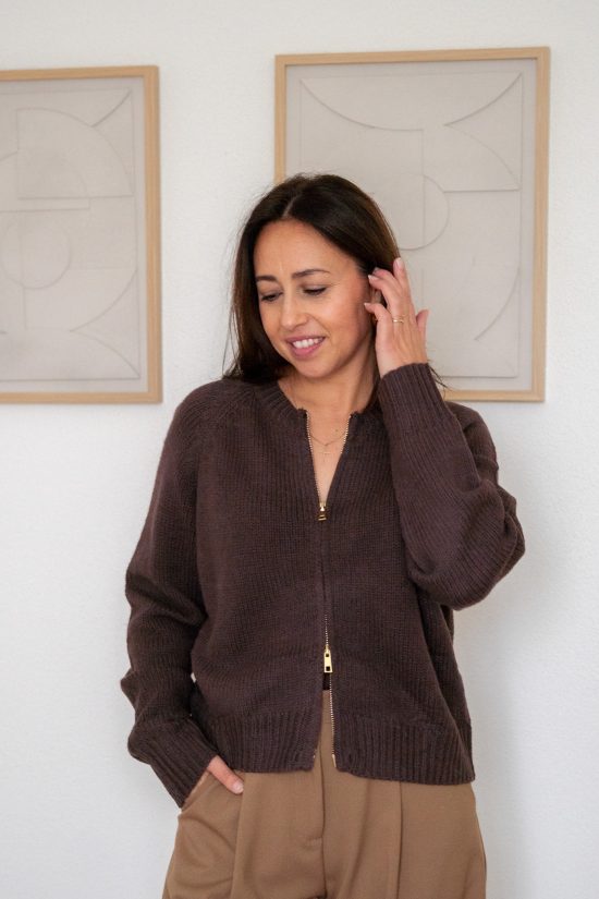Een stijlvol, zacht gebreid vest met een luxe uitstraling. Verkrijgbaar in de kleuren bruin en crème, beide perfect te combineren met iedere outfit. De goudkleurige rits kan zowel van boven als van onder worden geopend — een mooi en praktisch detail dat zorgt voor een moderne, verfijnde look.