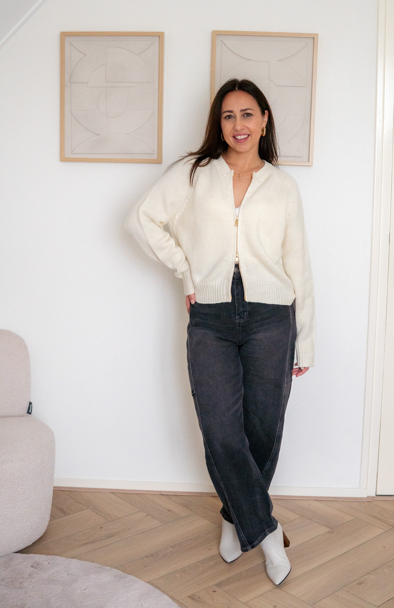 Een stijlvol, zacht gebreid vest met een luxe uitstraling. Verkrijgbaar in de kleuren bruin en crème, beide perfect te combineren met iedere outfit. De goudkleurige rits kan zowel van boven als van onder worden geopend — een mooi en praktisch detail dat zorgt voor een moderne, verfijnde look.