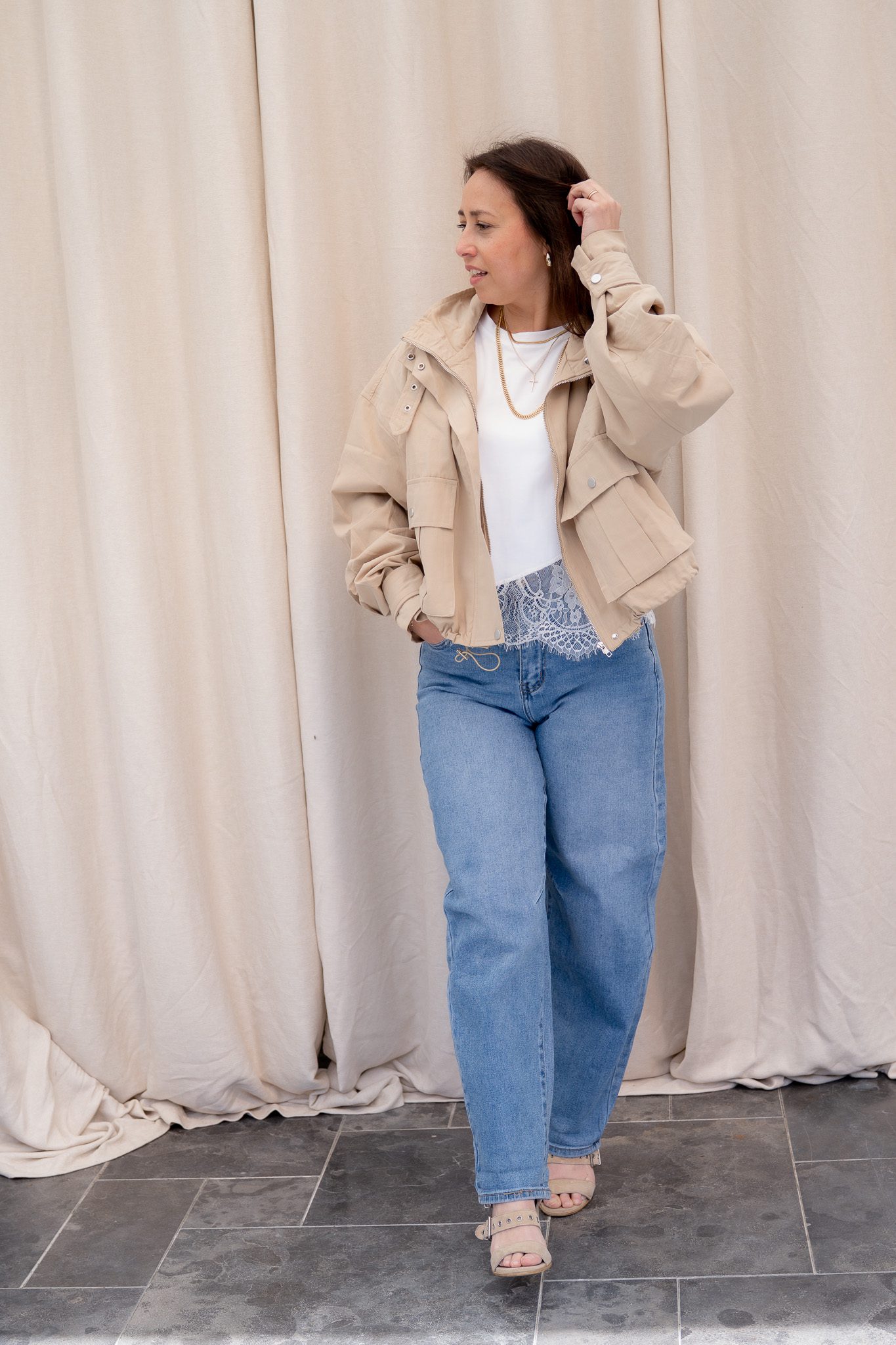 Deze beige jacket is zo’n item dat je outfit meteen “kloppend” maakt en perfect is als zomerjas.