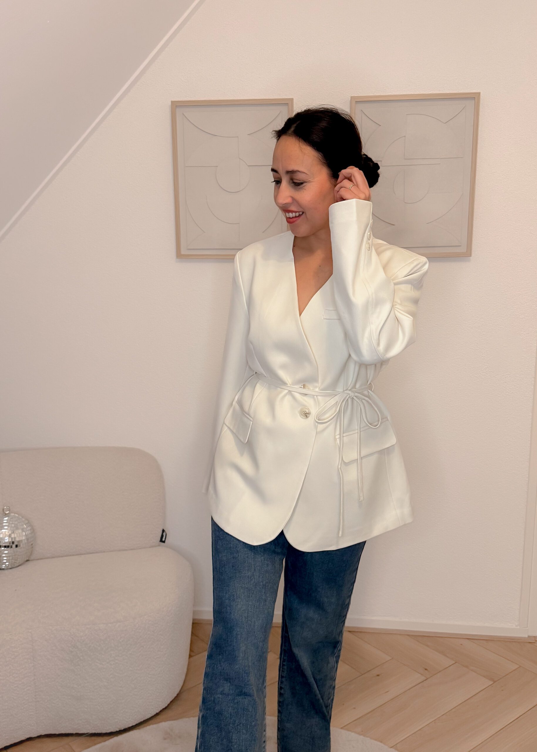Door het tijdloze ontwerp en de verfijnde afwerking is deze wolwitte dames blazer een item dat je elk seizoen opnieuw kunt dragen — van werkdag tot diner.