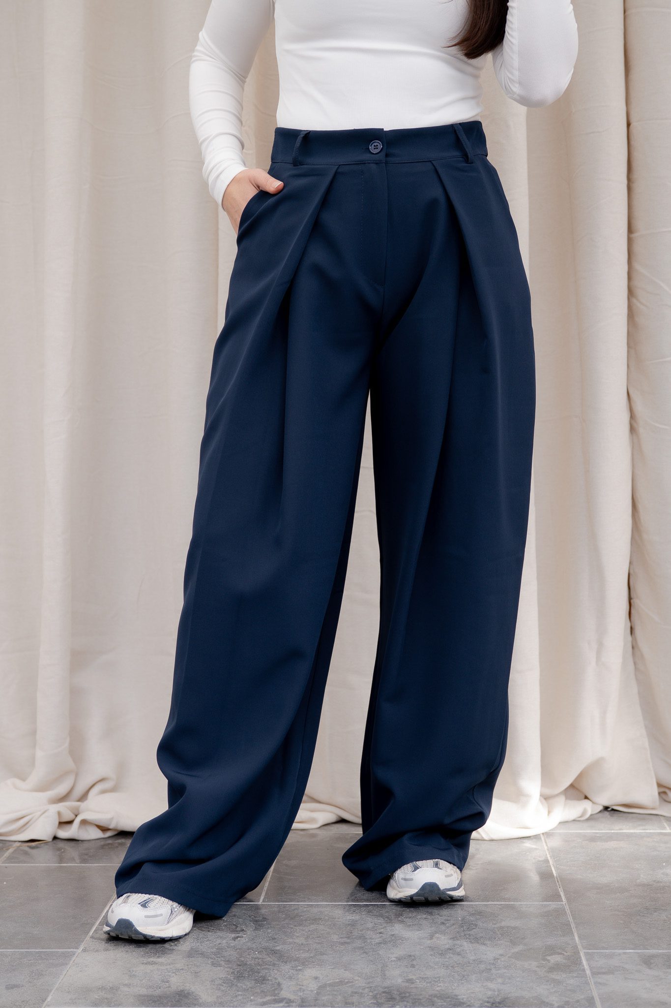 • Vaste plooien aan de voorzijde