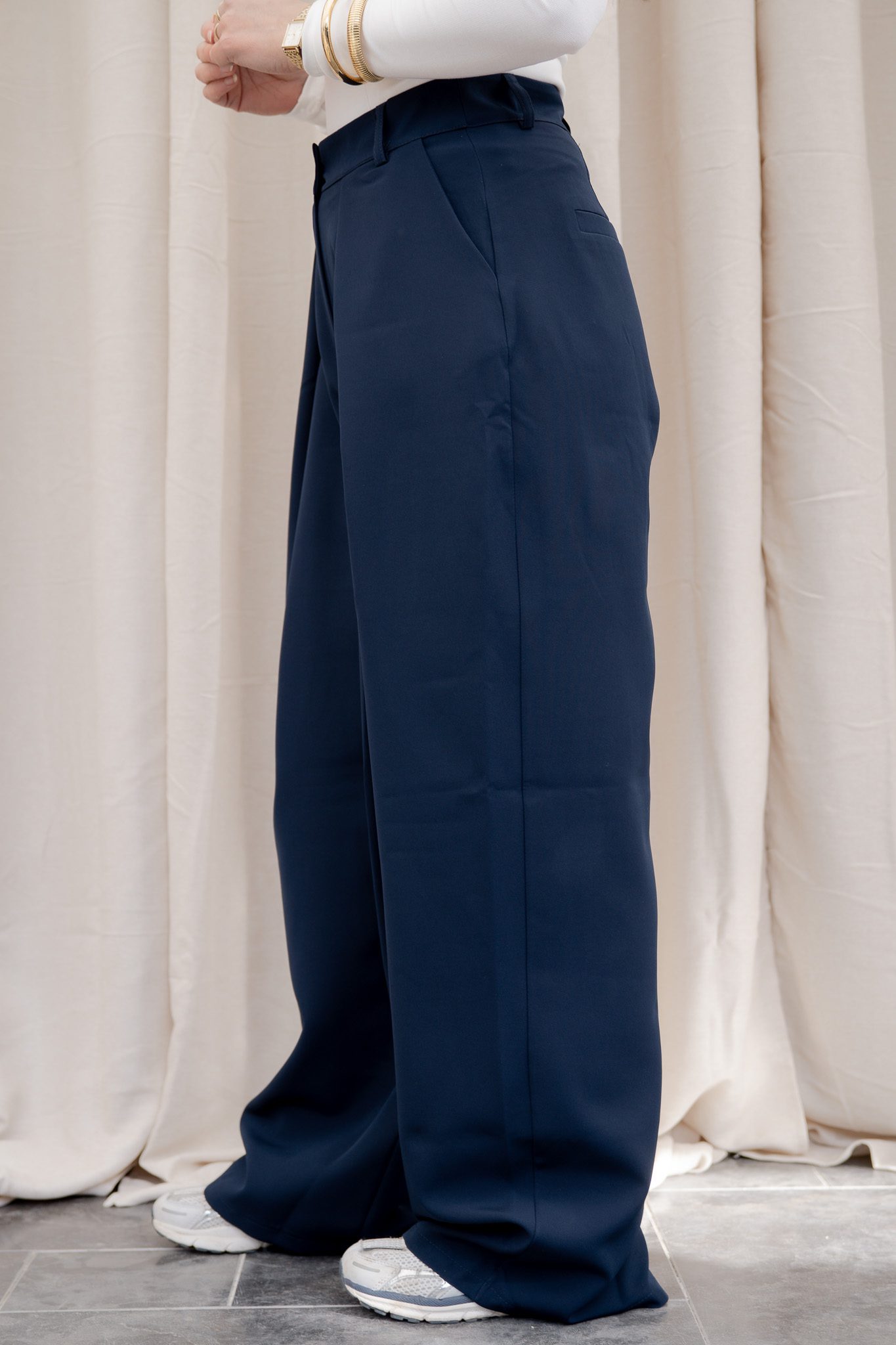 Het wijdvallende model valt soepel langs het lichaam en creëert een mooi silhouet. Dankzij de binnenbeenlengte van 80 cm krijgt de broek een elegante, langere lijn die perfect combineert met zowel sneakers als hakken. Een veelzijdige pantalon die je moeiteloos casual of gekleed kunt stylen.