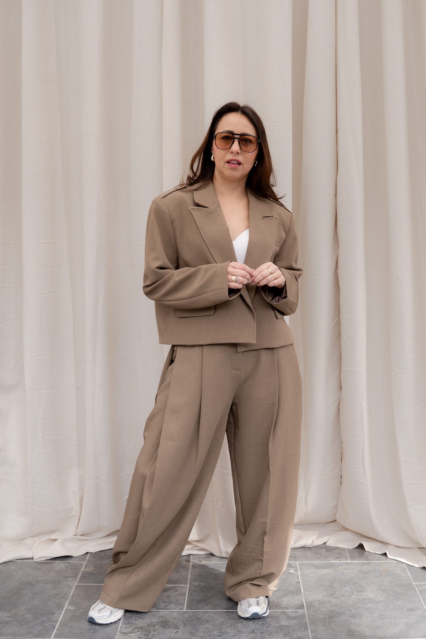 Draag de Novita blazer samen met de bijpassende Novita broek voor een krachtige, stijlvolle co-ord set. Perfect voor een zakelijke look, een diner of juist casual chic met sneakers.