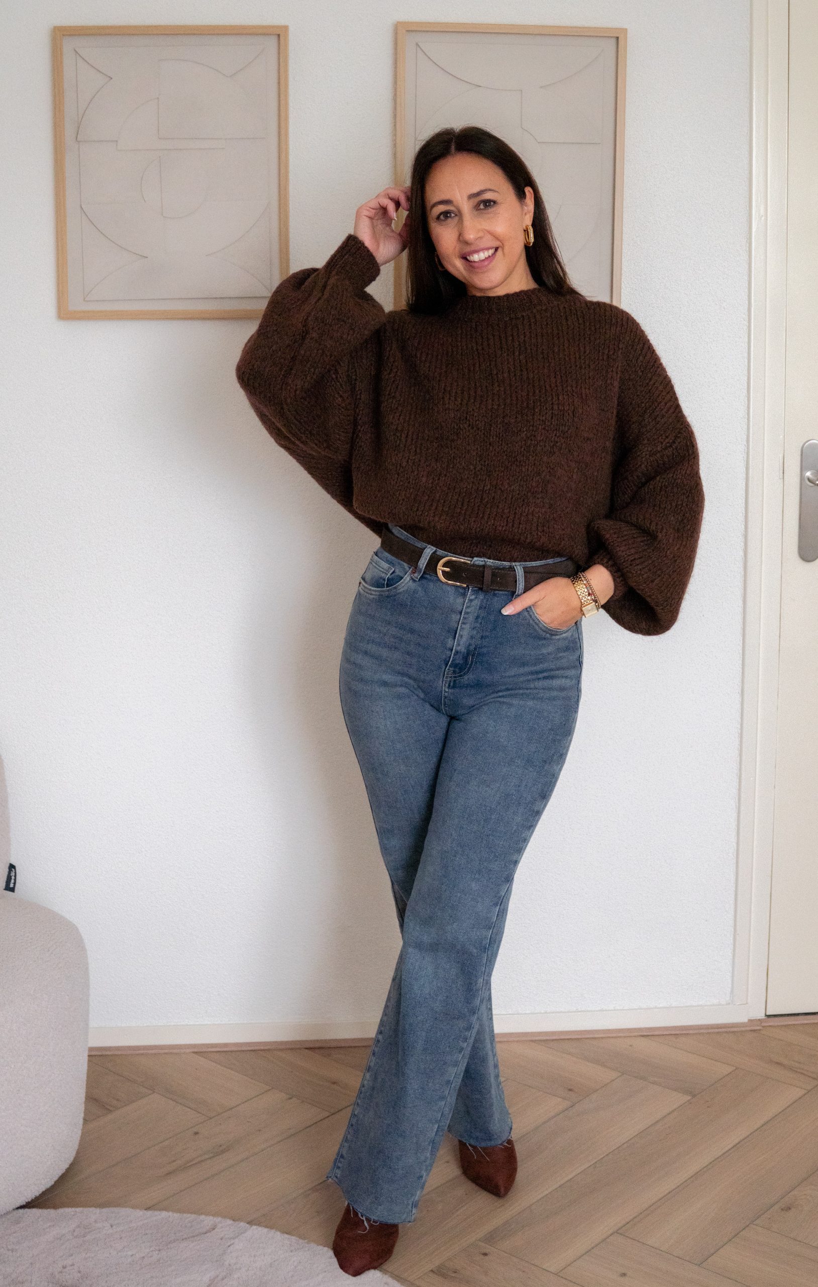 De SC Charlie Trui Bruin is een grof gebreide trui met een wijde mouw in de kleur Bruin. De trui heeft een ronde hals en een losvallende pasvorm. De Charlie  trui is ook verkrijgbaar in de kleuren creme, bordeaux, donkergrijs, grijs en zwart.