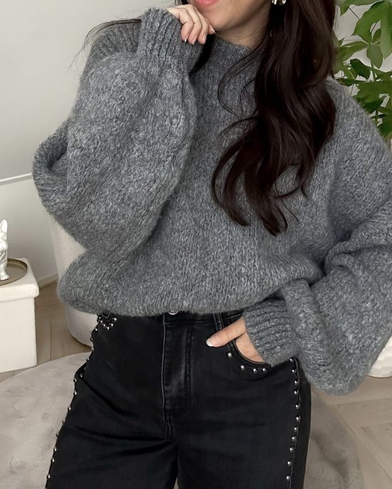 De SC Charlie Trui Donkergrijs is een grof gebreide trui met een wijde mouw in de kleur grijs. De trui heeft een ronde hals en een losvallende pasvorm. De Charlie  trui is ook verkrijgbaar in de kleuren creme, bordeaux, grijs en zwart.