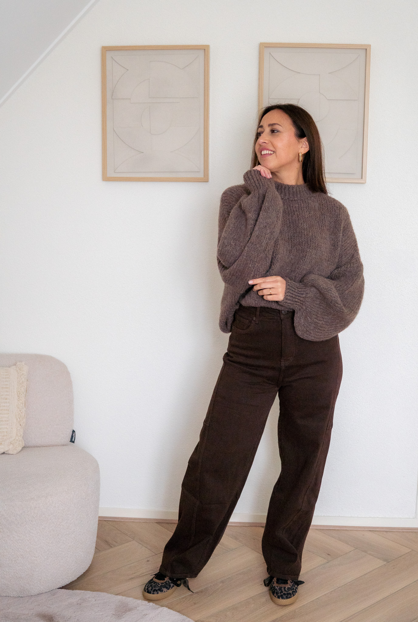 De Charlie Trui Taupe is een grof gebreide trui met een wijde mouw in de kleur Bruin. De trui heeft een ronde hals en een losvallende pasvorm en sluit mooi aan bij de polsen. De Charlie  trui is ook verkrijgbaar in de kleuren creme, bordeaux, donkergrijs, grijs en zwart.