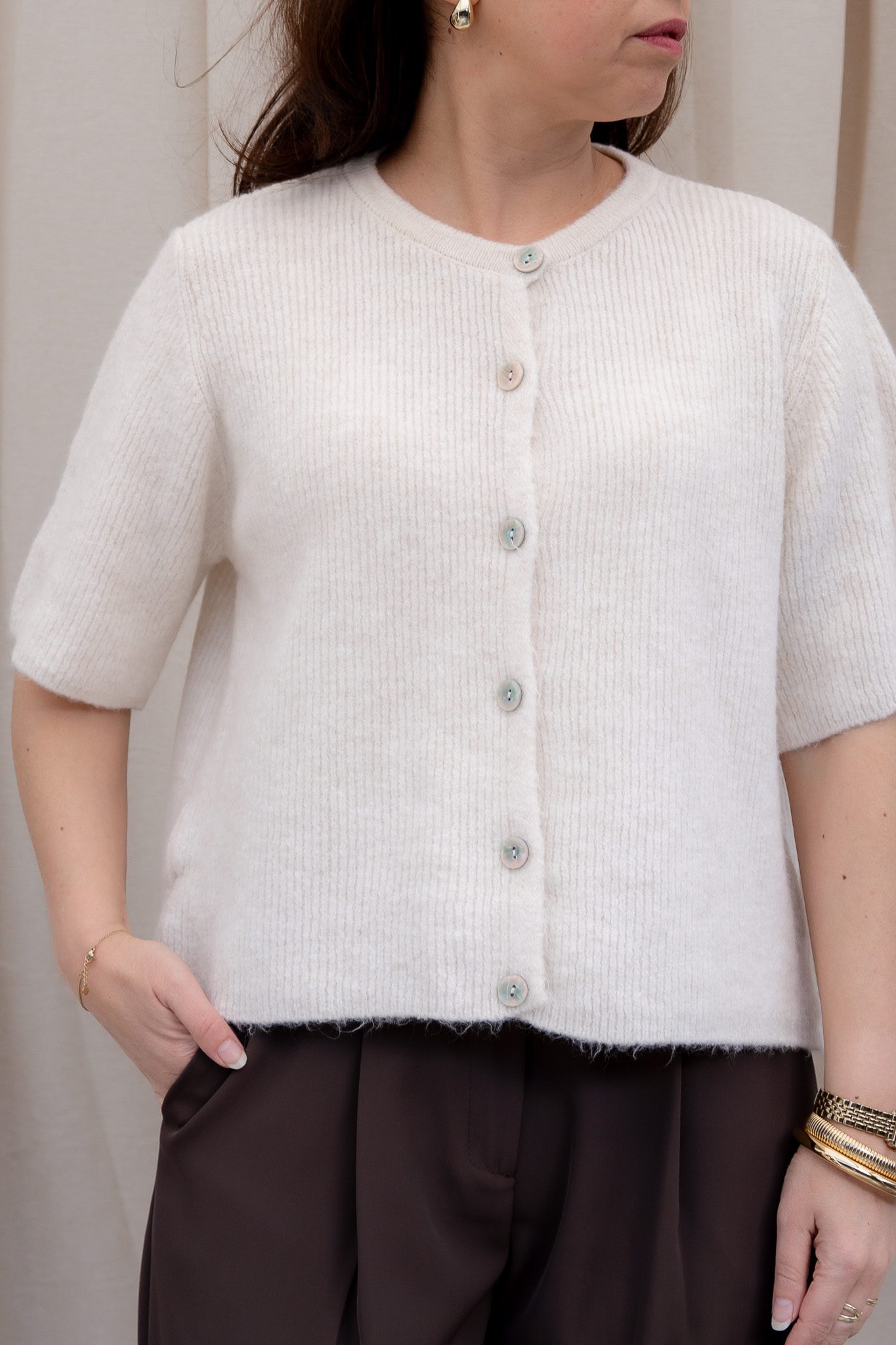 De SC Lina Vest in cremeis een fris en vrouwelijk vest dat je outfit meteen een zachte, lichte uitstraling geeft. Dit vest is geliefd vanwege het comfortabele draaggevoel: zacht, soepel en niet kriebelend ideaal om direct op de huid te dragen.