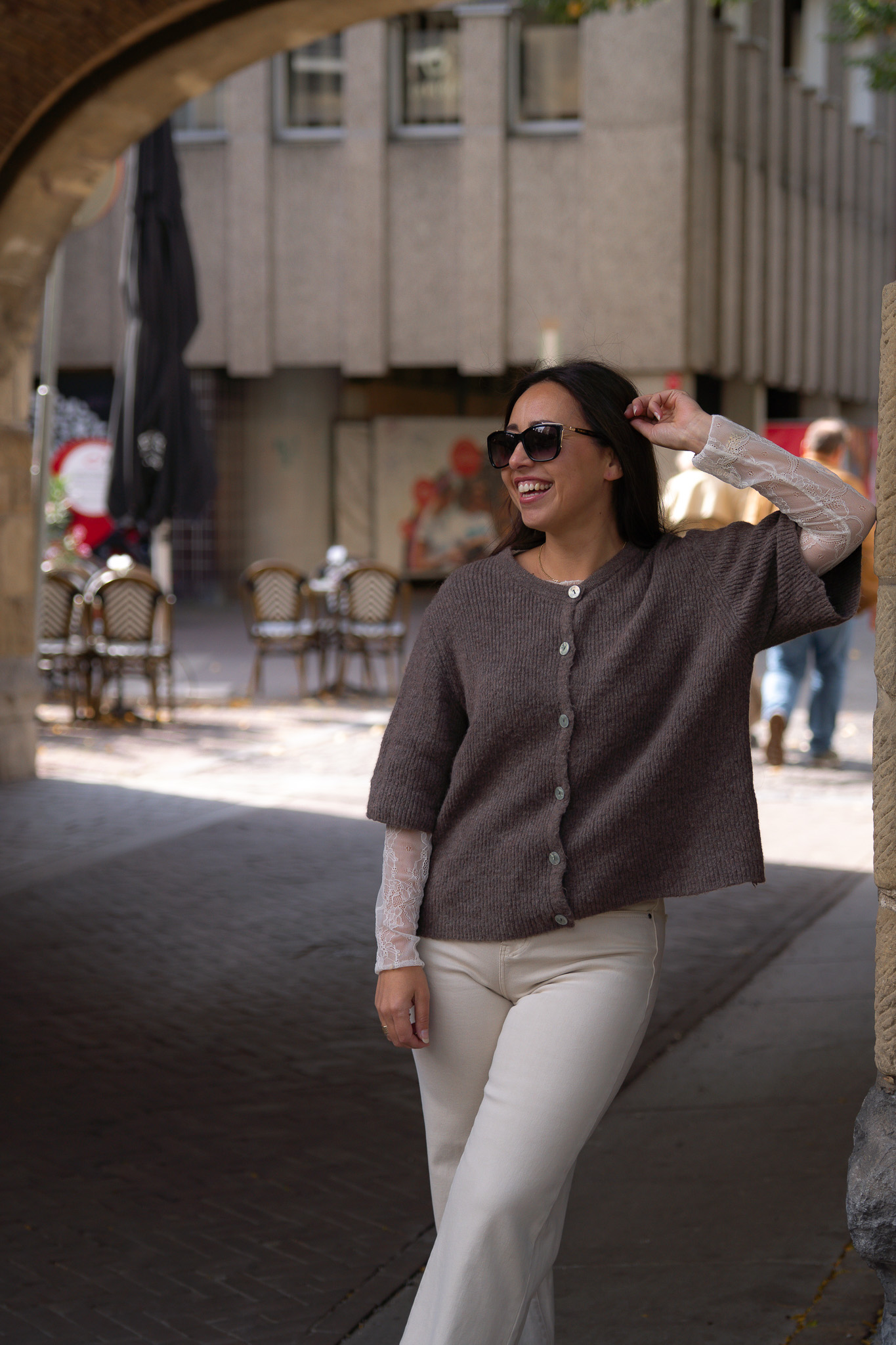 SC Lina Vest Taupe van sheclothes is een mooi vest met korte mouwen. Het vest heeft een ronde hals en leuke knoopjes. Je kunt het Lina vest dicht als top dragen of lekker warm over je favoriete top aandoen! Het Lina Vest is er ook in de kleuren geel, creme en roze.