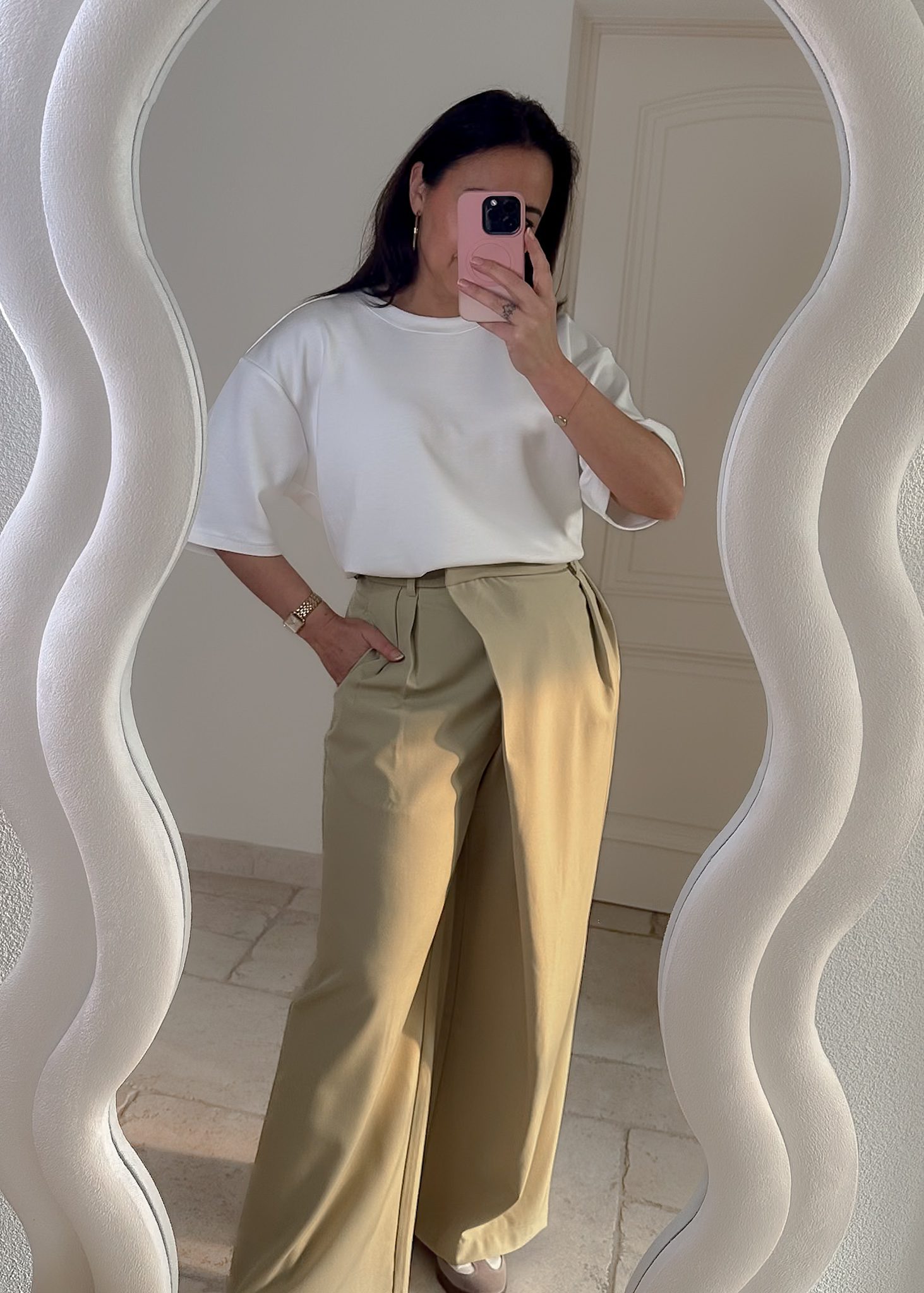 Het Sira T-Shirt in wit is zo’n item dat je elke week opnieuw uit je kast pakt. Simpel, comfortabel en nét even luxer dan een basic. De zachte stof voelt prettig aan, valt soepel om het lichaam en draagt licht, waardoor dit shirt moeiteloos past bij zowel casual als geklede looks.